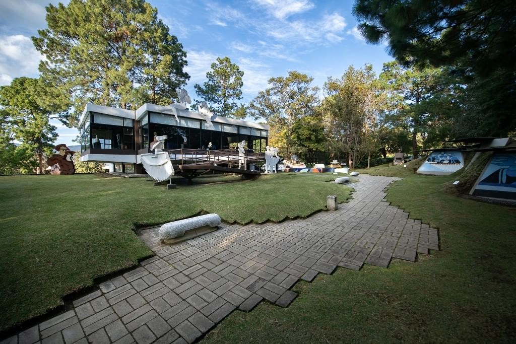 This cultural park with spectacular views of the three volcanoes (Agua, Fuego and Acatenango) and the city of La Antigua Guatemala, was designed with innovative cabins, containers and luxury mobile homes, restaurant, bar, art galleries, chapel, museums, plazas, patios, fish pond, canopy and spaces for events that serve as a perfect setting. Ideal for celebrations in a natural environment to ensure that guests enjoy a very special stay.